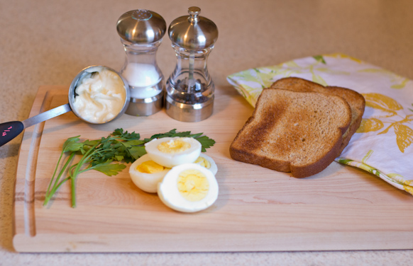I have never ever made an egg salad sandwich before--I know, hard to believe! I wonder if that jar of mayonnaise in my fridge has reached it due